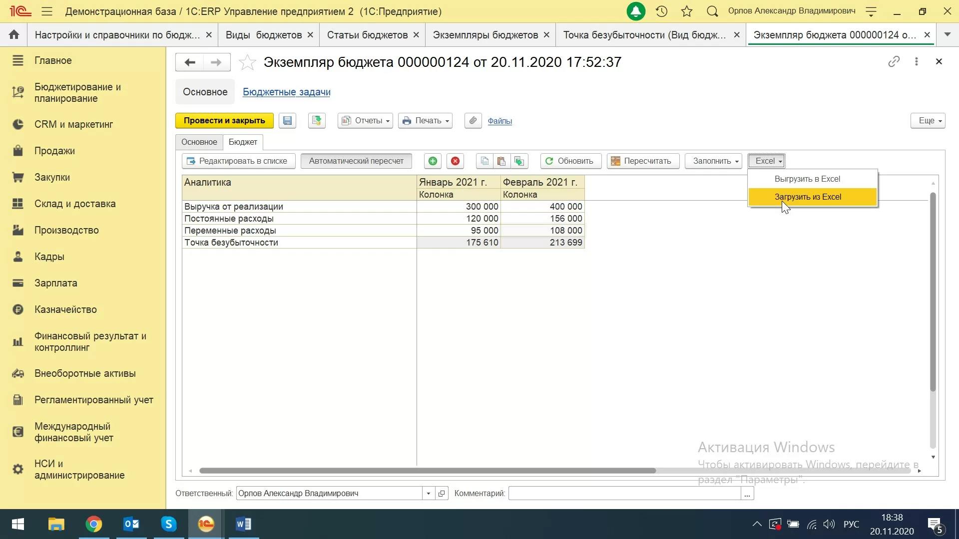 Корректно настроим программы 1С для оценки точки безубыточности вашего бизнесаЭто можно было рассчитать несколькими способами: создать разные виды бюджета с глубокой детализацией выручки и разных видов расходов по статьям бюджетирования, а потом провести настроить данный отчет в одном экземпляре бюджета. Можно оперировать одним бюджетом и настраивать суммы статей с добавлением различных показателей на этапе настройки ячеек таблицы.