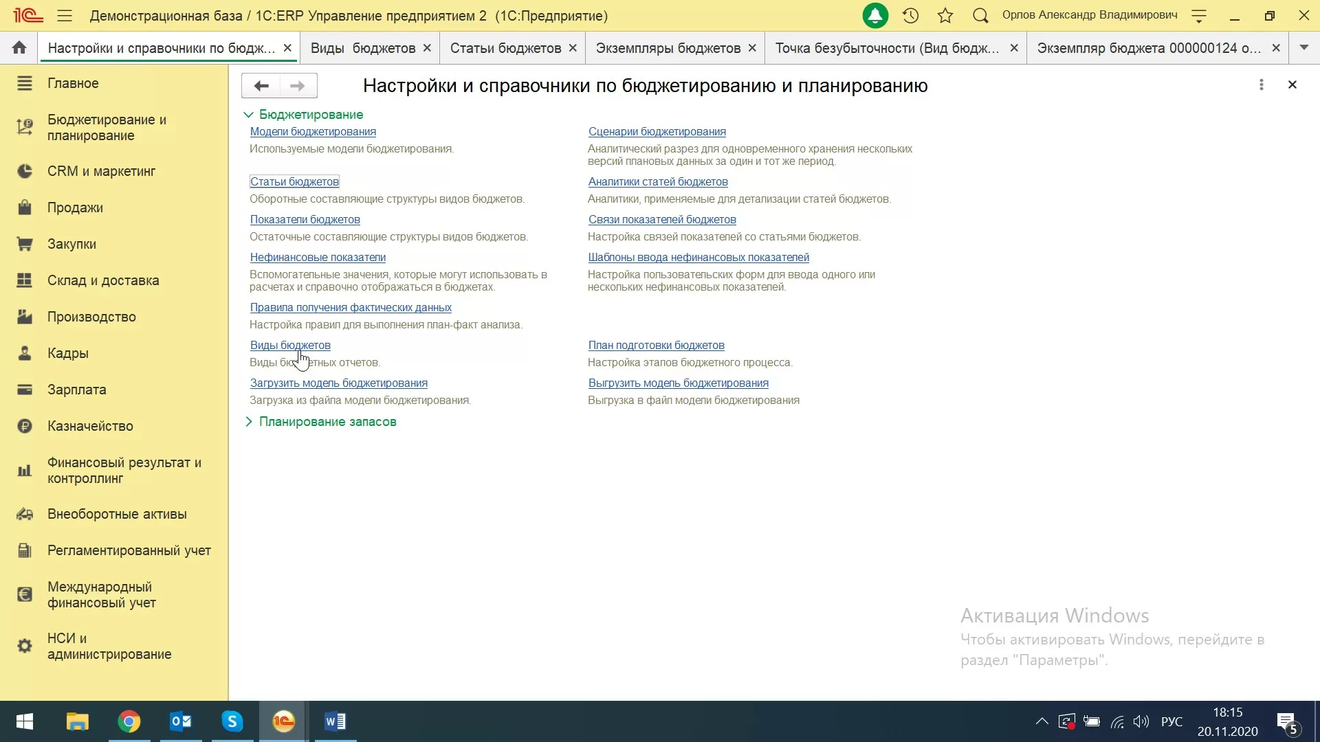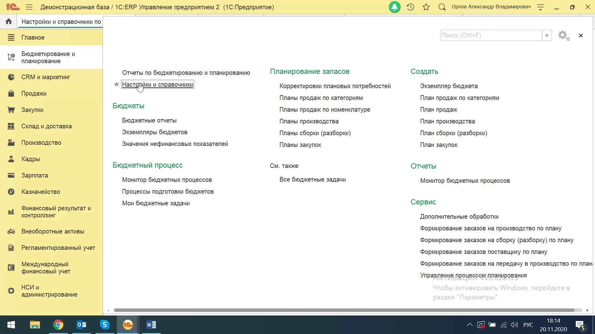 Переходим в раздел «Бюджетирование и планирование-Настройки и справочники».