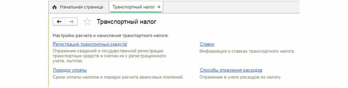 В соответствующем разделе предусмотрены пункты – «Регистрация ТС», «Порядок уплаты», «Ставки», «Способы отражения расходов».