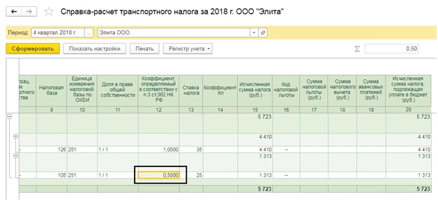 Начисление транспортного налога