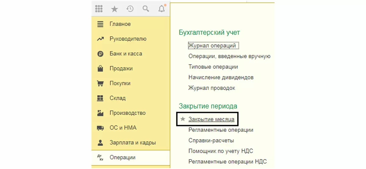 Проведем документ «Закрытие месяца» декабрем. Этот документ находится в меню «Операции».