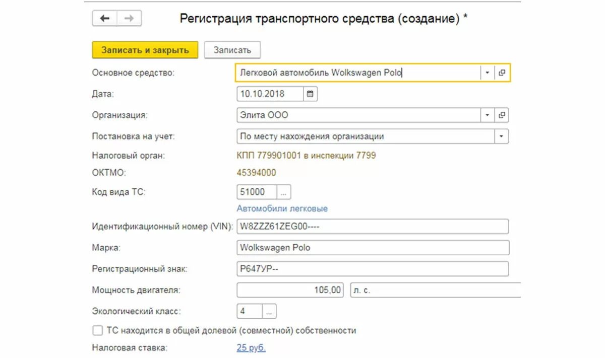 Рассмотрим расчет транспортного налога по шагам