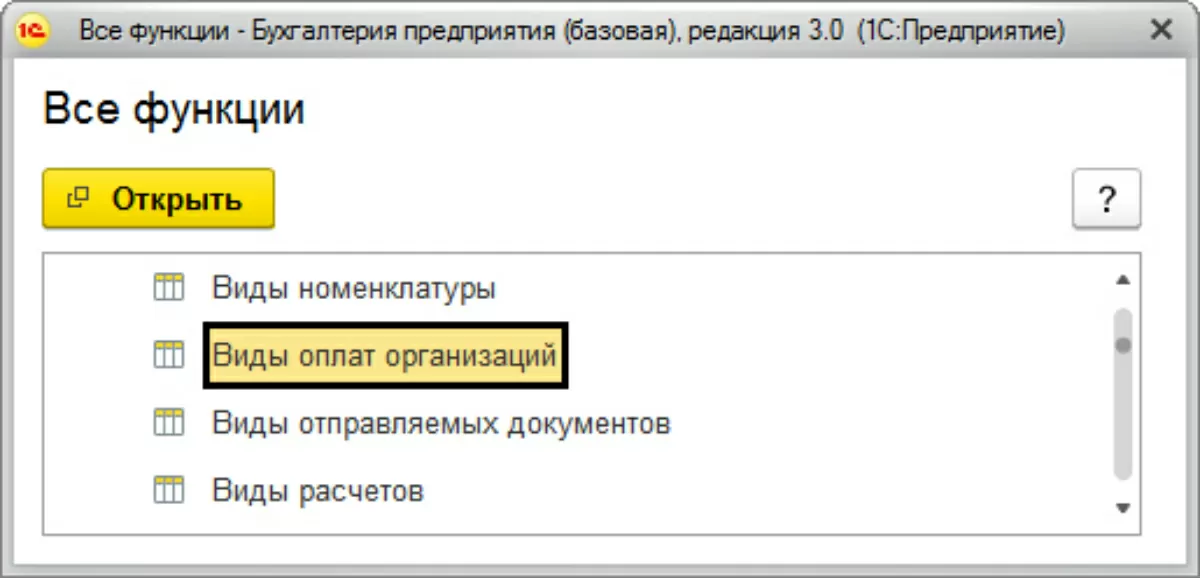 В дальнейшем эти данные нам будут необходимы при заполнении справочника «Виды оплат», данные которого указываются в документе, отражающем операцию по оплате платежной картой. Данный справочник доступен в разделе меню «Все функции-Справочники-Виды оплат организаций».