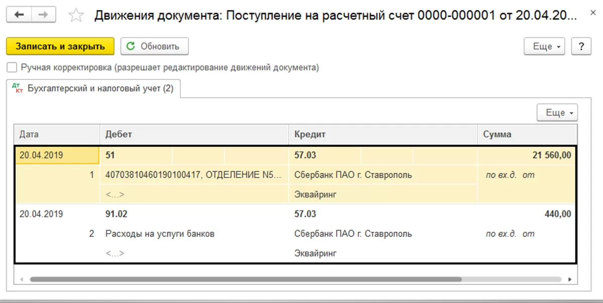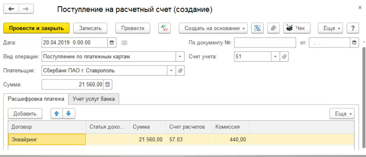 Проводки по договору эквайринга в 1С