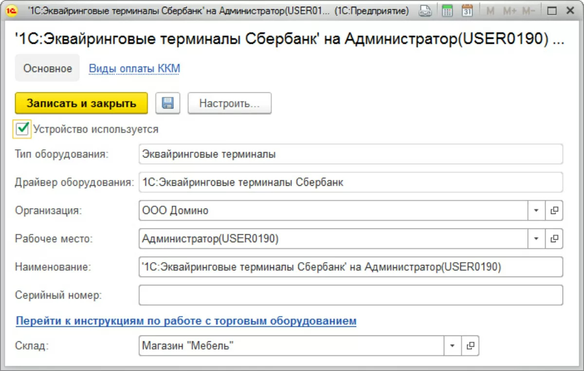 Предварительно специалистами настраивается терминал, данные которого также отражены в настройке.