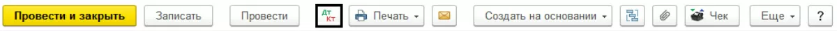 Проведем наш документ и проанализируем бухгалтерские проводки, которые мы получили в результате этих операций. Посмотреть проводки, сформированные документом, можно, нажав Дт/Кт в верхней части любого документа.