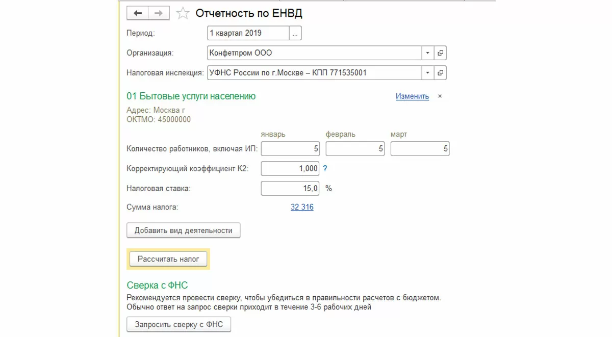 После расчета налога можно будет заполнить декларацию по ЕНВД в разделе «Отчеты-1С-Отчетность-Регламентированные отчеты».