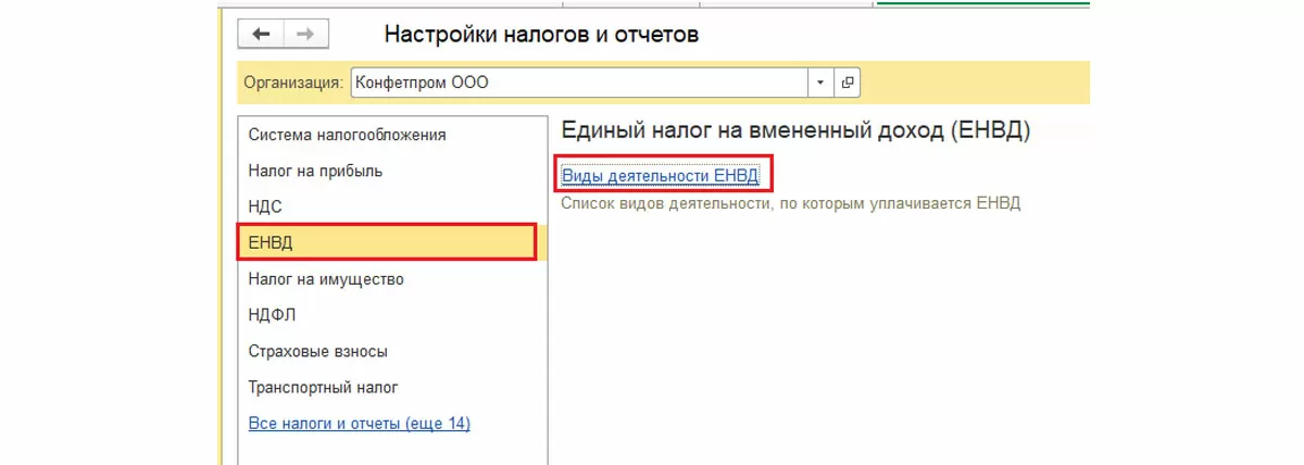 После этого в левой колонке появится пункт «ЕНВД».