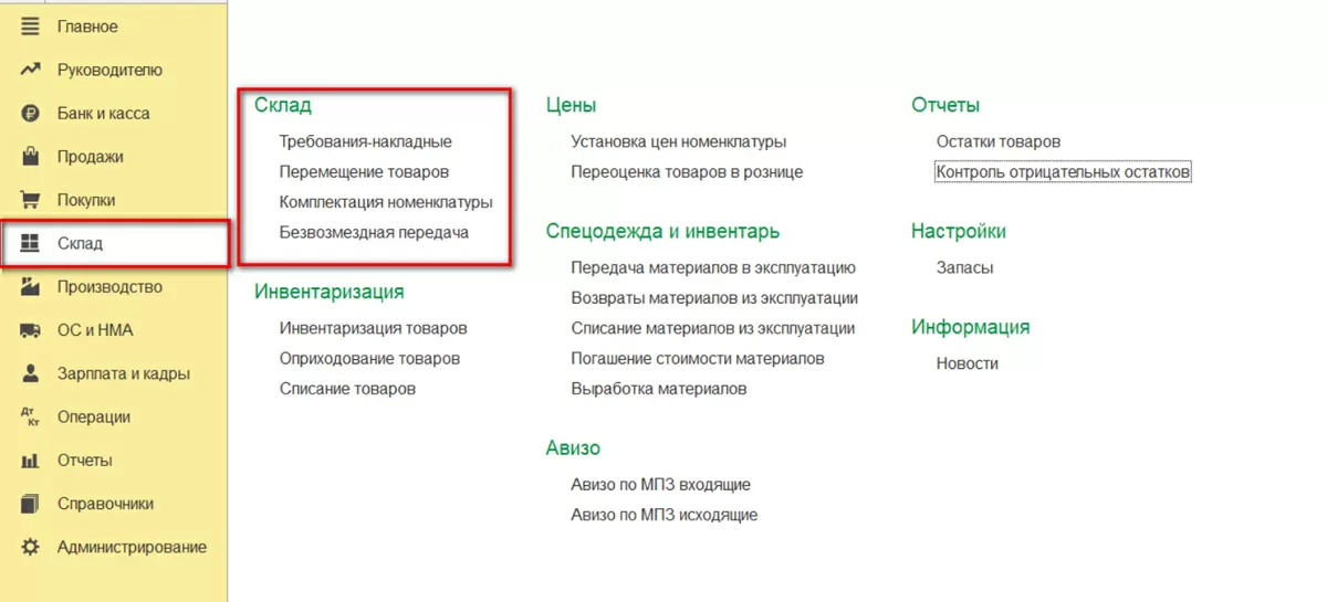 Списание бензина и других ГСМ оформляется одинаково документом «Требование-накладная», который находится в разделе «Склад».
