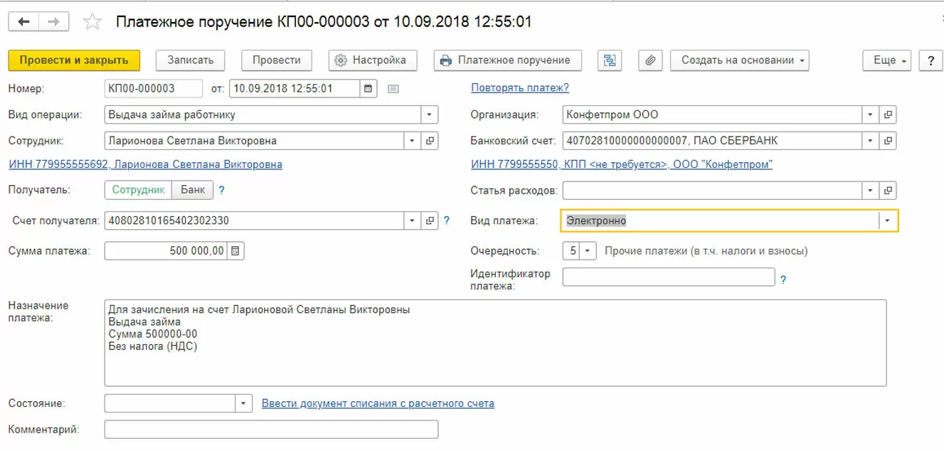 Рассмотрим процесс выдачи займа сотруднику на примере: