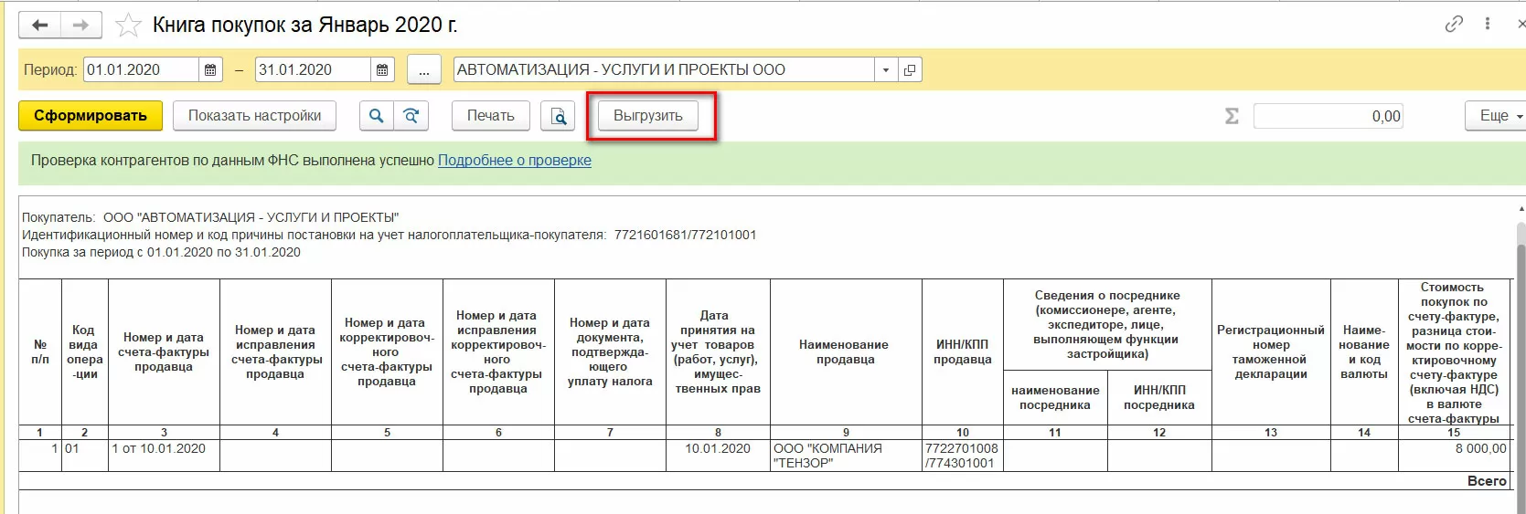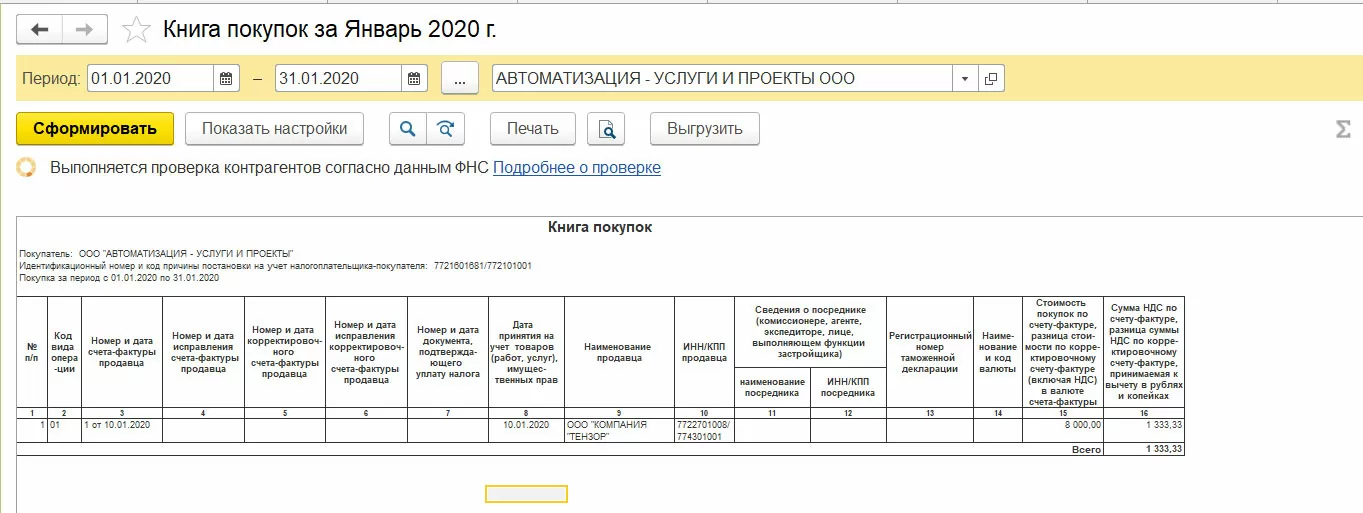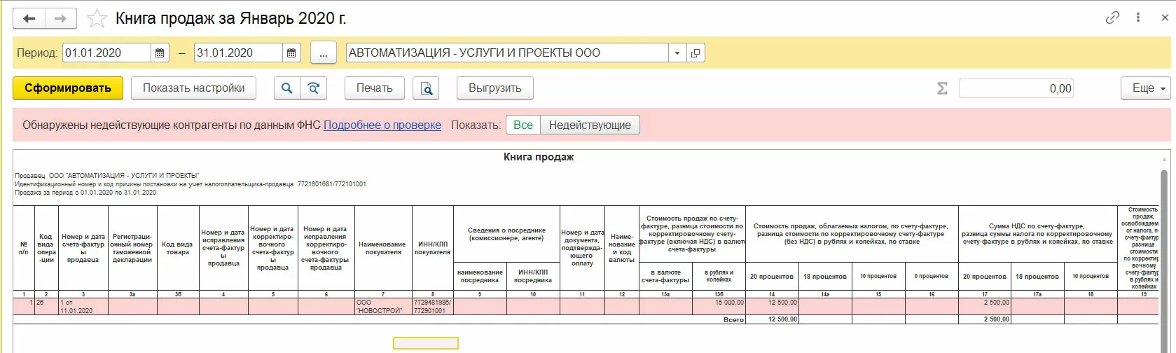 Нажимаем «Сформировать», указав период, и проверяем наши данные.