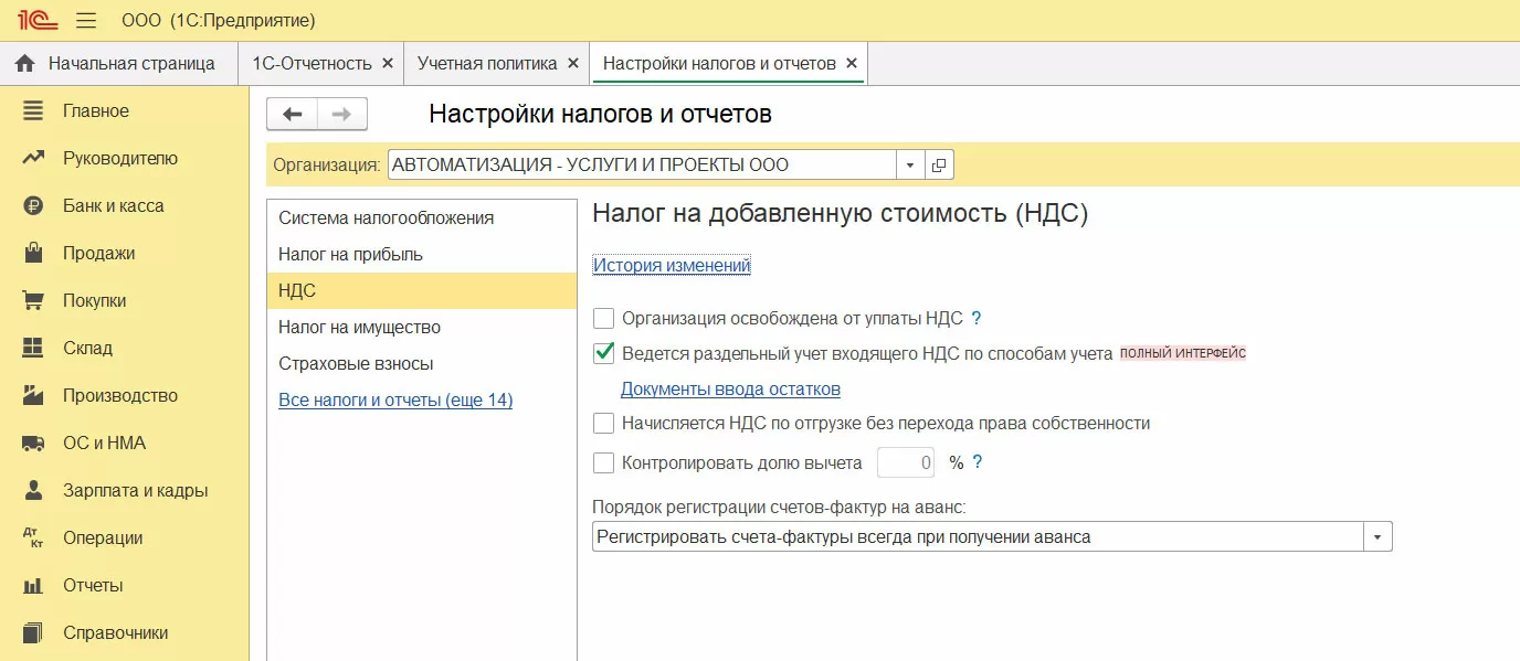 Рассмотрим настройку и отражение НДС – самого «популярного» налога, в программе «1С:Бухгалтерия» и начнем с настройки «Учетной политики» для правильного учета НДС.