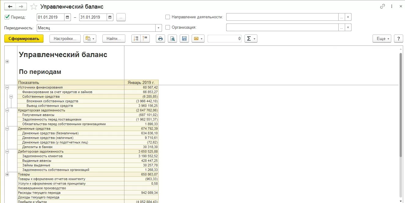 Управленческий баланс формируется реже, чем другие управленческие отчеты, но является эффективным инструментом для осуществления контроля над тем, насколько корректно ведется учет в компании и формируются ОПУ и ОДДС.