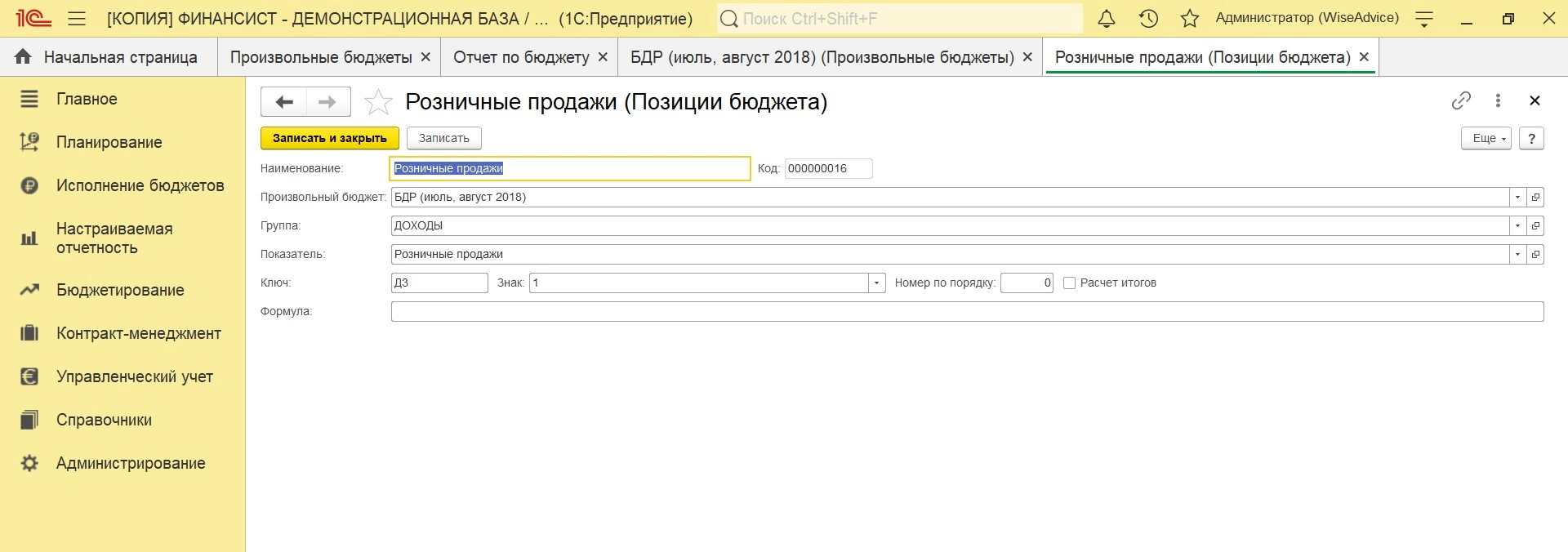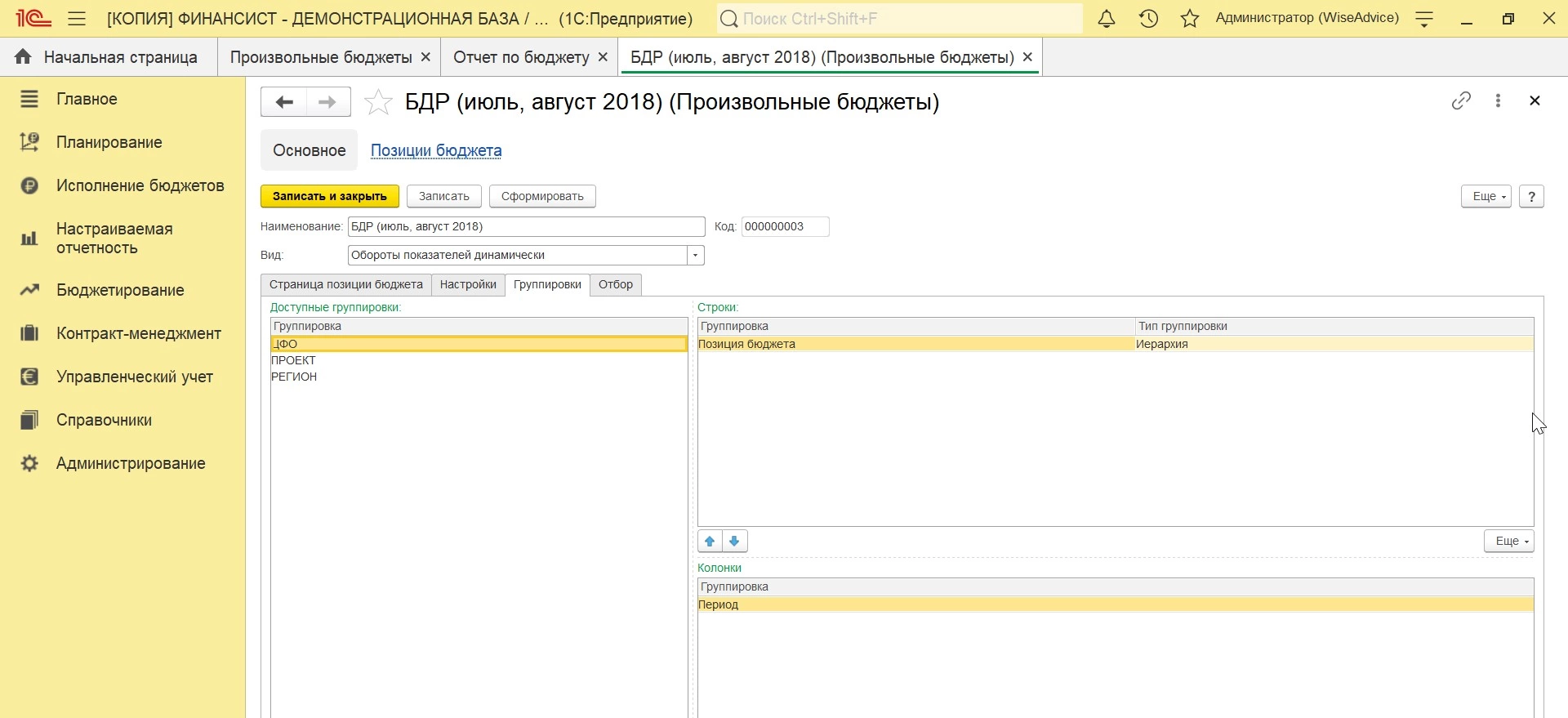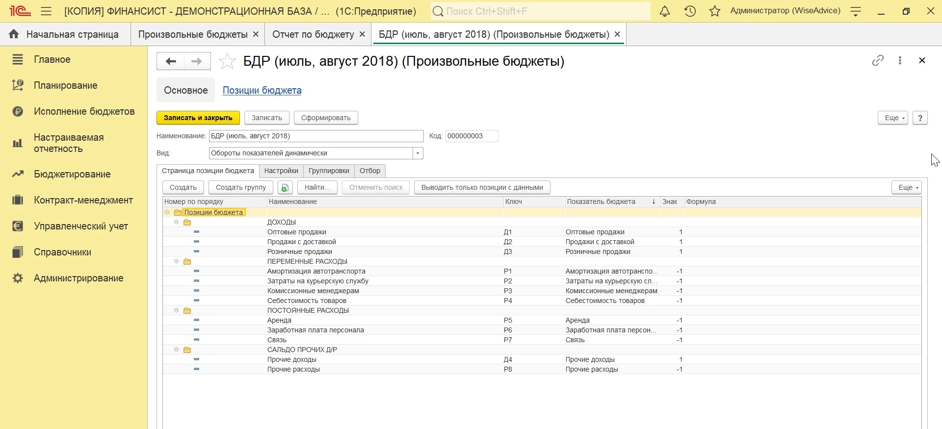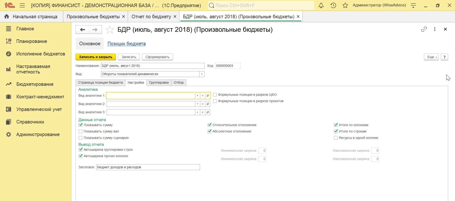 Формирование Отчета (бюджета) доходов и расходов в WA:Финансист