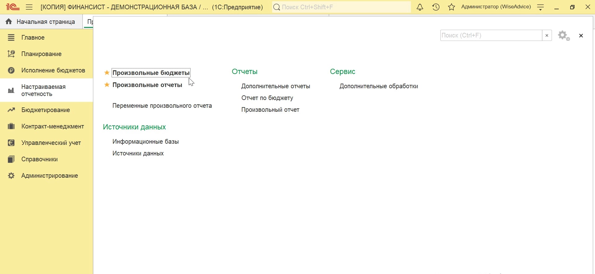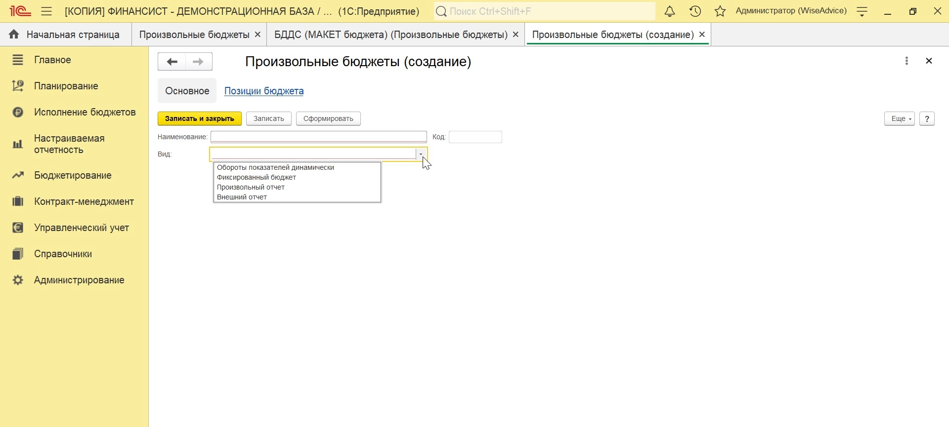 Переходим в раздел «Настраиваемая отчетность-Произвольные бюджеты», нажимаем кнопку «Создать».