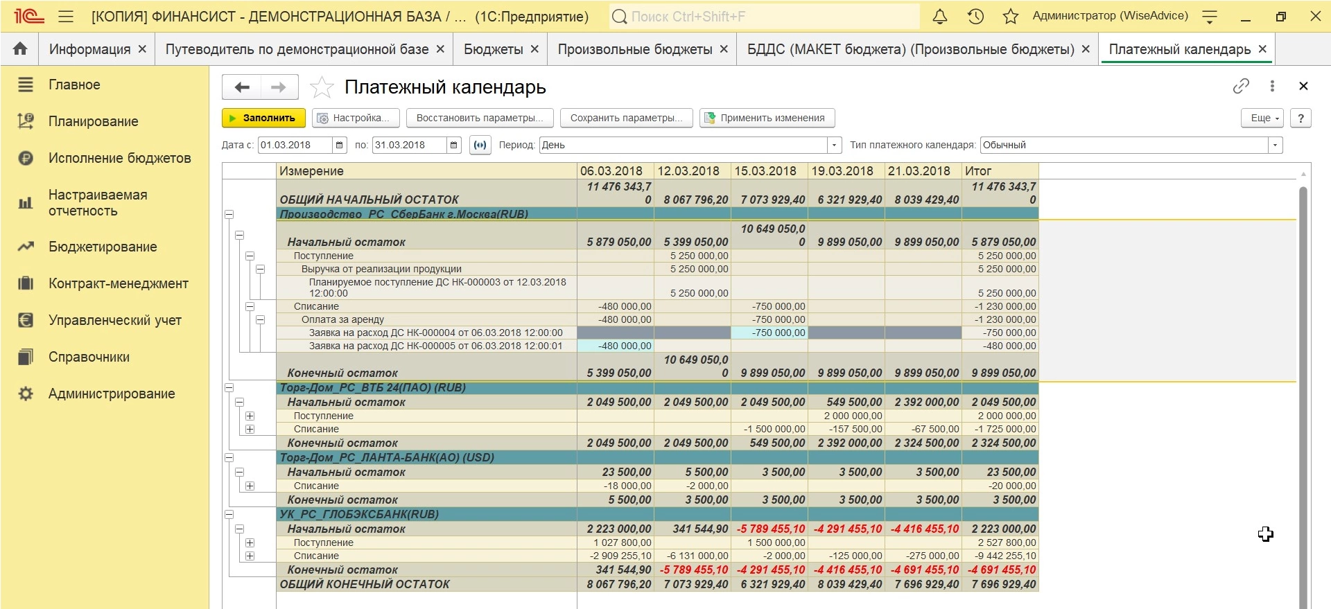Зачастую для оперативного финансового планирования организации используют Платежный календарь – один из ключевых инструментов, позволяющих управлять финансовыми потоками. Обычно он составляется на короткие временные промежутки, которые задают, исходя из периодичности основных платежей компании. Данный отчет составляется с целью предотвращения кассовых разрывов путем балансировки денежных потоков таким образом, чтобы имеющихся в организации финансовых резервов с учетом плановых поступлений хватило на оплату предстоящих расходов.