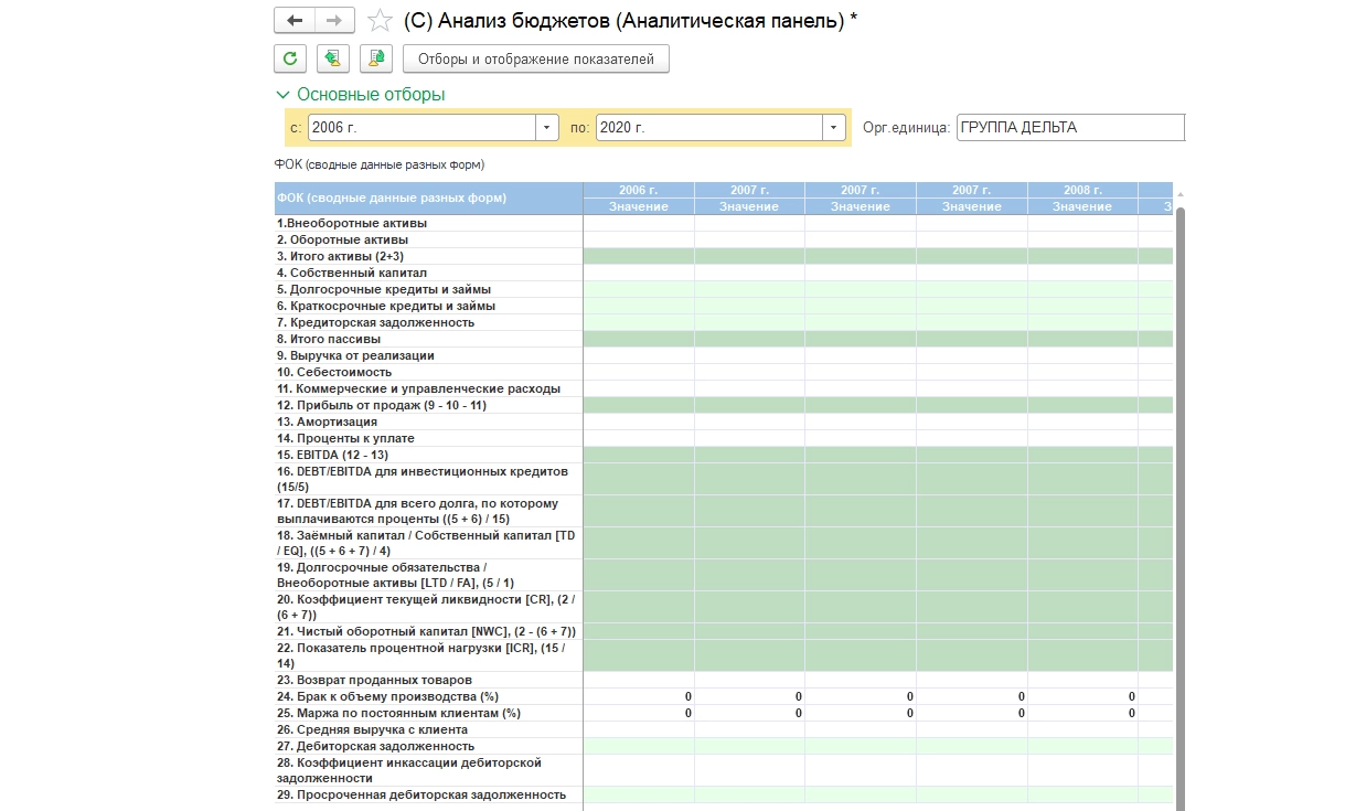 Настроим 1С:ERP или 1С:УХ для корректного управления дебиторской задолженностьюВ разрезе анализа бюджетов могут быть настроены панели с упоминанием дебиторской задолженности и показателей по работе с ней.