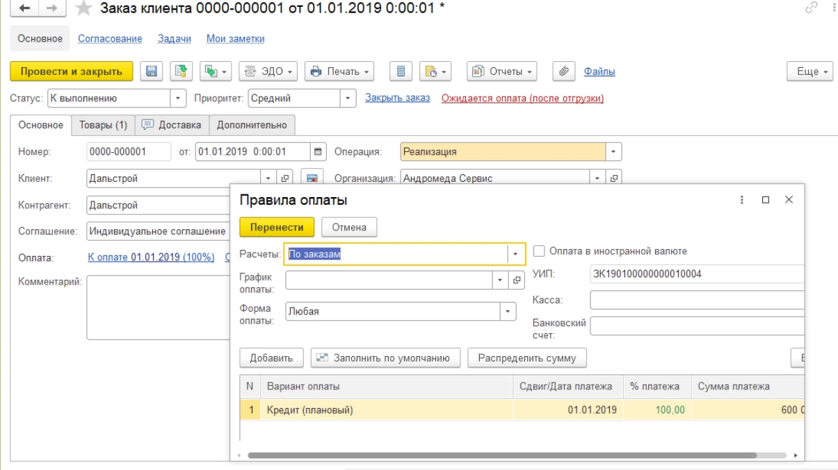 На основании «Заказа» можно сформировать первичные учетные документы: реализацию, счет-фактуру, счет на оплату и пр. Также «Заказ» может являться распоряжением на их создание, например, при регистрации расходных ордеров (для этого должна быть включена подсистема ордерных складов).