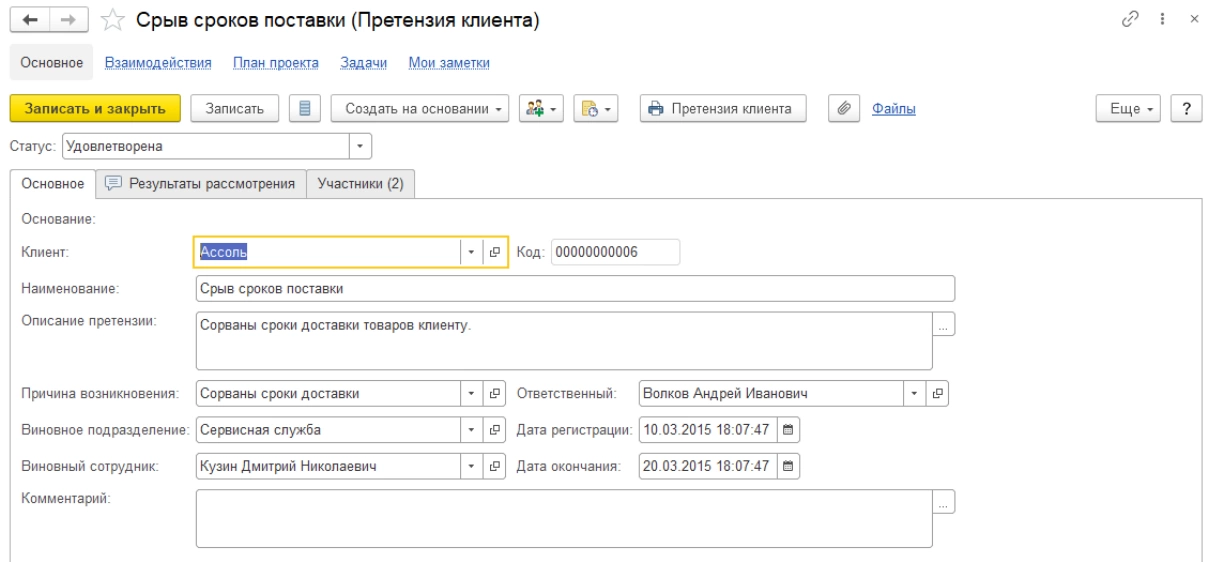 Если клиент выразил претензии по количеству и качеству, их фиксируют в одноименном документе. Там же контролируют этапы работы с претензией – с момента ее регистрации, до вынесения решения по ней. Этапы отработок конфликтных ситуаций устанавливают в «Плане проекта». Далее по каждому из них можно зафиксировать результат.