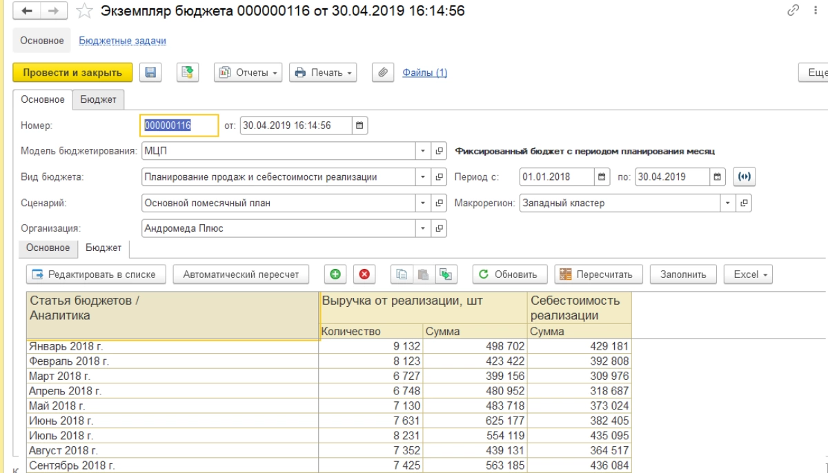 Для целей долгосрочного планирования в системе предназначена подсистема «Бюджетирование», где через «Экземпляры бюджета» формируются долгосрочные планы продаж на основании статистики, среднесрочных планов или согласно заданным формулам построения бюджетов.