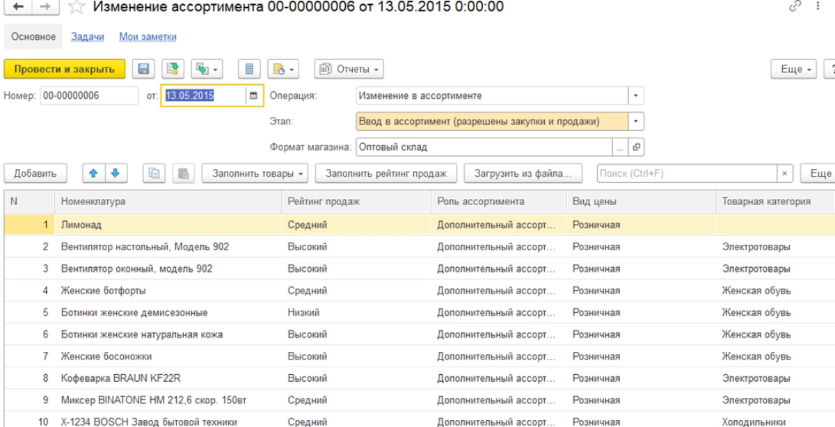 - управление ассортиментом;