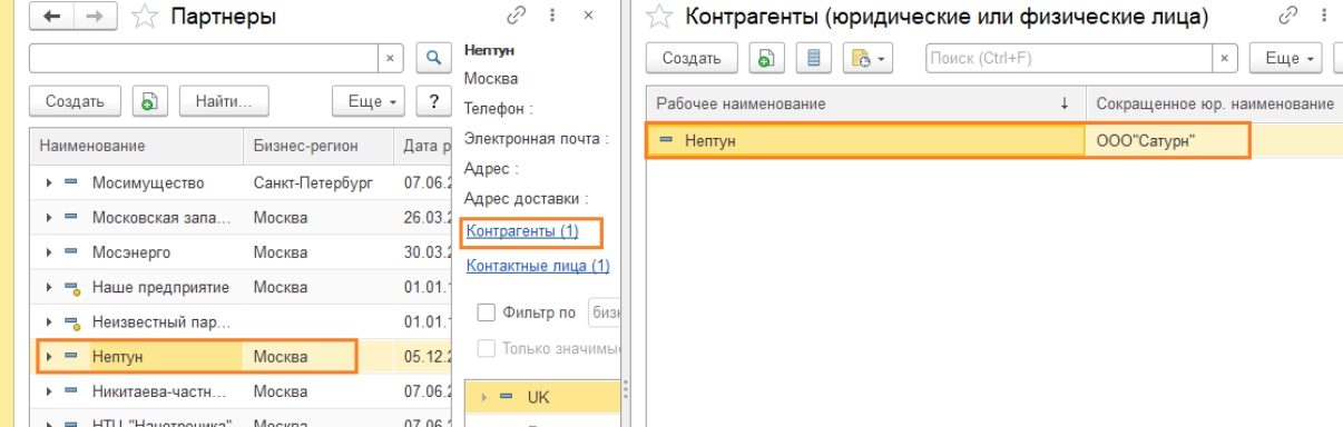 Одна из основных задач этой области – работа с потенциальными клиентами. В 1С:ERP она реализована в двух связанных классификаторах – «Партнеры» и «Контрагенты». Независимое ведение этих справочников позволяет фиксировать потенциальных клиентов в системе без внесения регистрационных данных (ИНН, ОГРН и пр.), а контрагента с полноценными реквизитами – на этапе заключения договора.