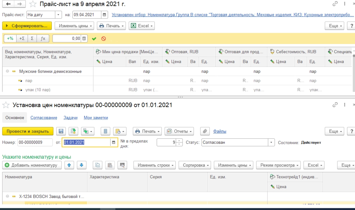 Для оценки и сравнения цен предусмотрен отчет «Прайс-лист», где можно сформировать список цен согласно необходимым отборам.