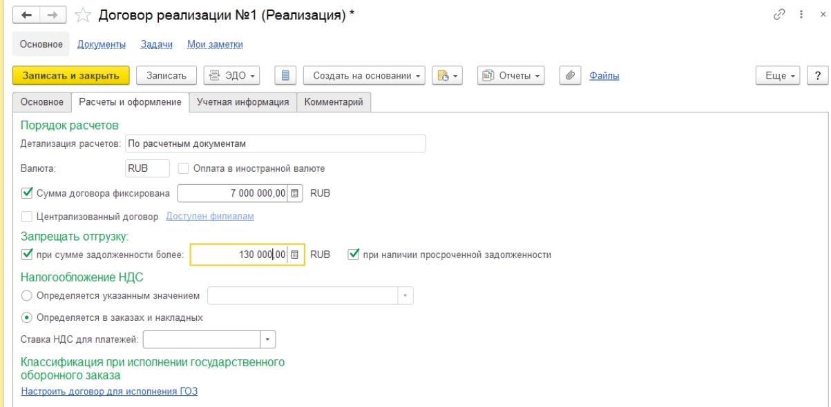 В договоре с клиентом фиксируют цену договора и этапы оплаты, а также параметры запрета отгрузки.