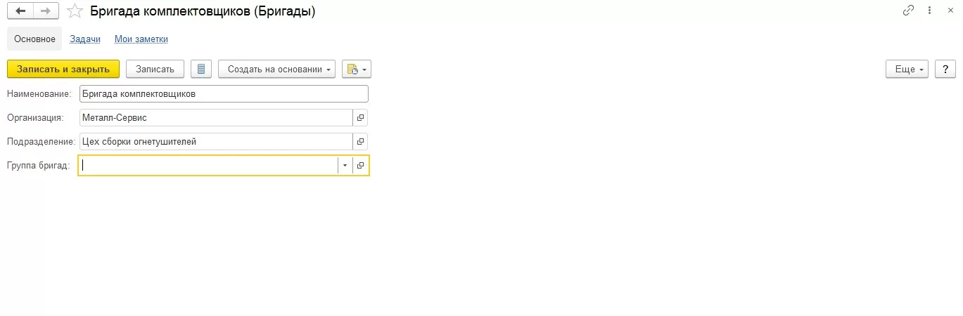 Для исполнения задач допускается задать бригаду ответственных за исполнение. Справочник «Бригада» служит для описания группы рабочих, выполняющих общее задание и несущих коллективную ответственность за результат. Физические лица можно включать в бригады вне ограничений по организации и подразделению, в которых они числятся.