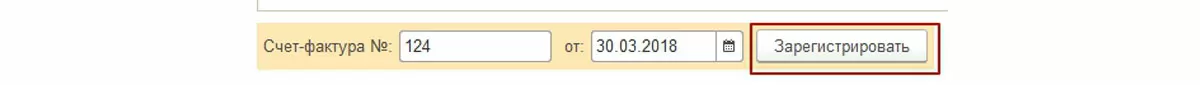 После заполнения реквизитов шапки и табличной части осталось зарегистрировать входящий – счет-фактуру, используя специальный инструмент в подвале документа.