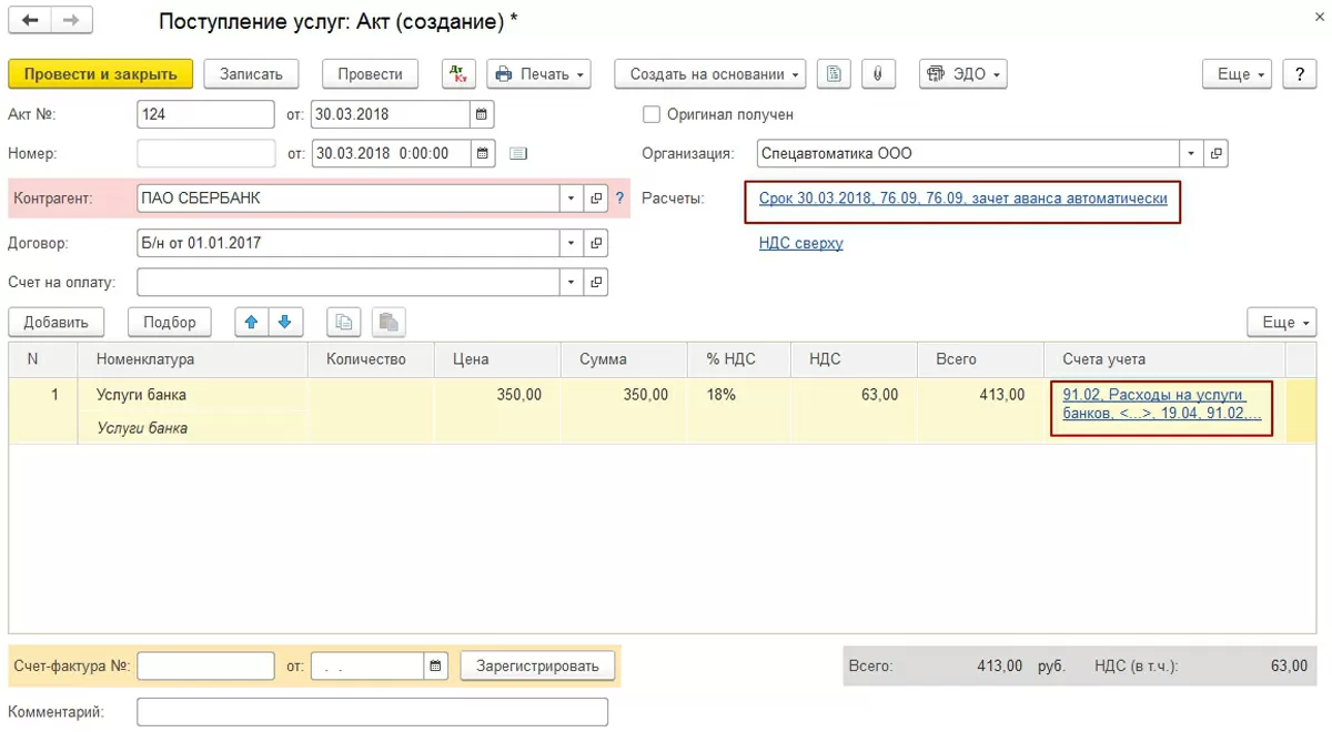 Услуги банка, облагаемые НДС – способ регистрации в 1С 8.3