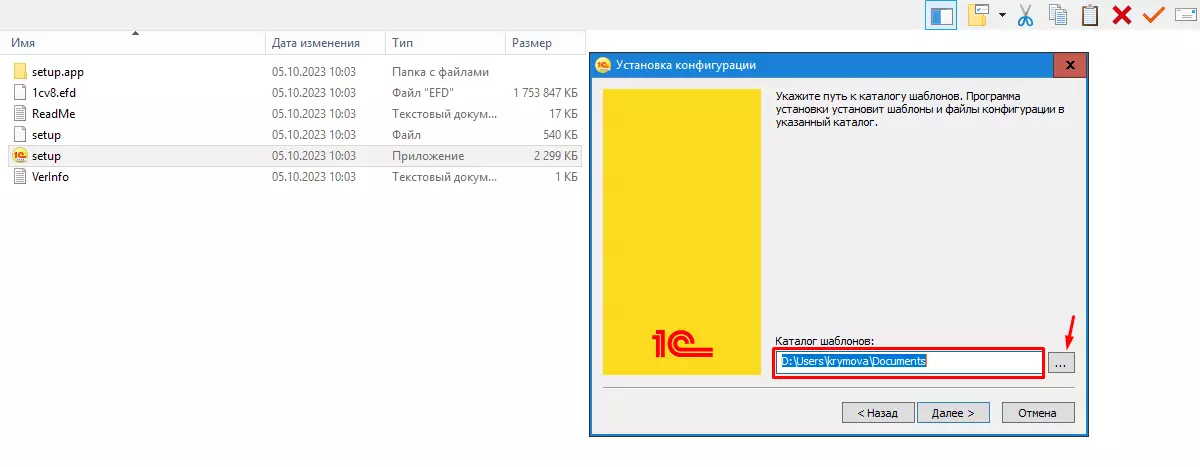 Проверьте, чтобы путь, в который вы установили шаблон конфигурации, был прописан в окне каталогов, как показано на скриншоте. Далее возвращаемся к предыдущему окну. Выбираем конфигурацию, которую хотим создать и нажимаем «Далее».