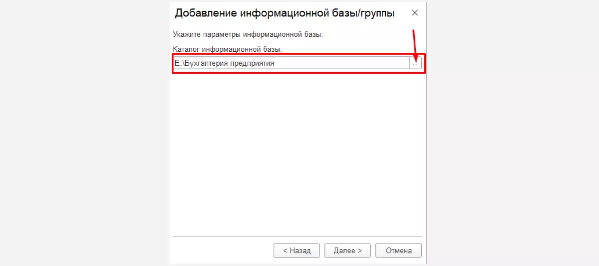 Указываем путь к папке, в которой будет лежать наша новая база.