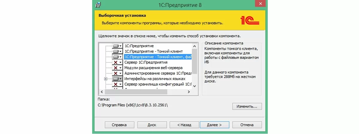 - Выборочная установка 1С 8. Пользователь самостоятельно выбирает необходимые установочные компоненты.