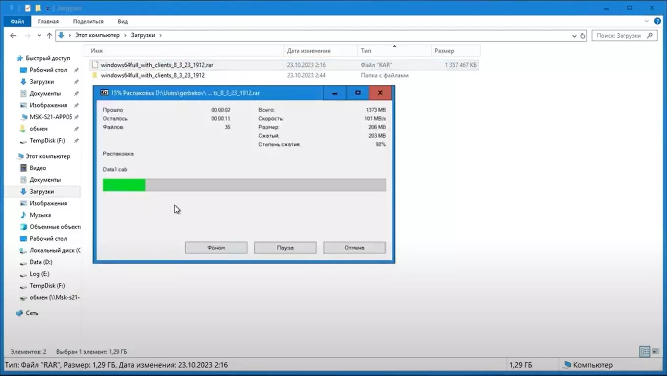Первым делом нужно распаковать дистрибутив платформы 1С:Предприятие 8.3. Откуда и как его получить, опишем ниже.