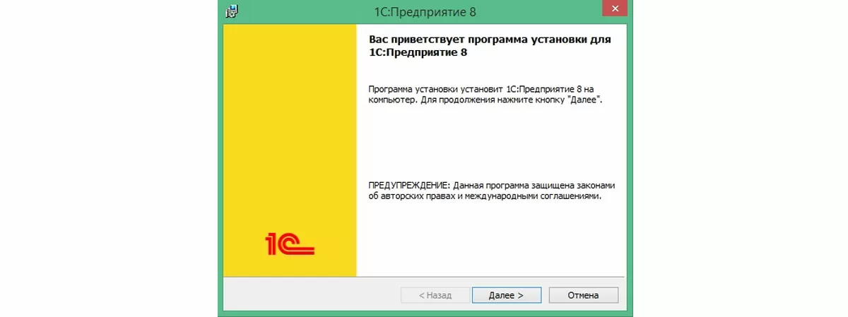 В зависимости от формата комплекта 1С поставки установка может немного отличаться на начальных этапах.