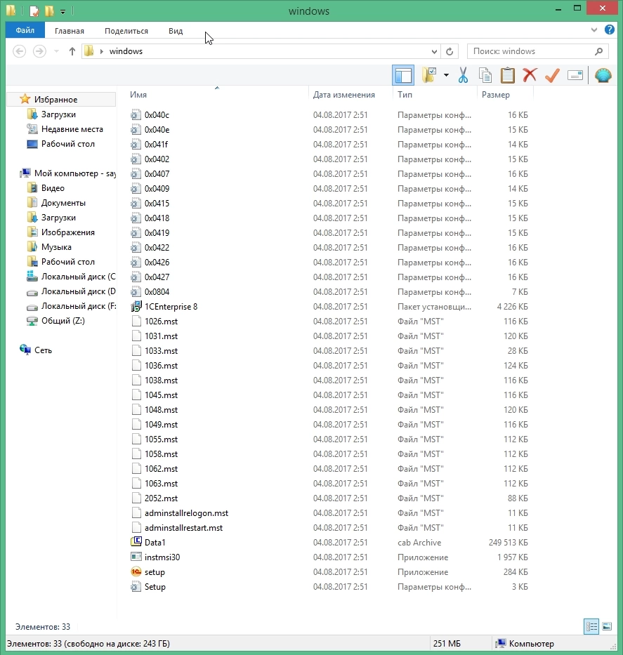 После распаковки архива distr в папке появится набор файлов, идентичный составу установочного диска из коробочной версии поставки программного продукта 1С:Предприятие 8.3.