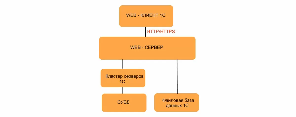 Внешне веб-клиент ничем не отличается от тонкого клиента, за исключением того, что интерфейс 1С открывается в браузере. Для запуска веб клиентов 1С необходима публикация веб-сервера и наличие Интернета на рабочих местах. За связь базы данных и пользовательского интерфейса веб-клиента отвечает веб-сервер и технологии DHTML и HTTPRequest. В момент работы данные передаются через HTTP на веб-сервер, компилируются, а непосредственно исполнение происходит на стороне клиента, в среде интернет-браузера.