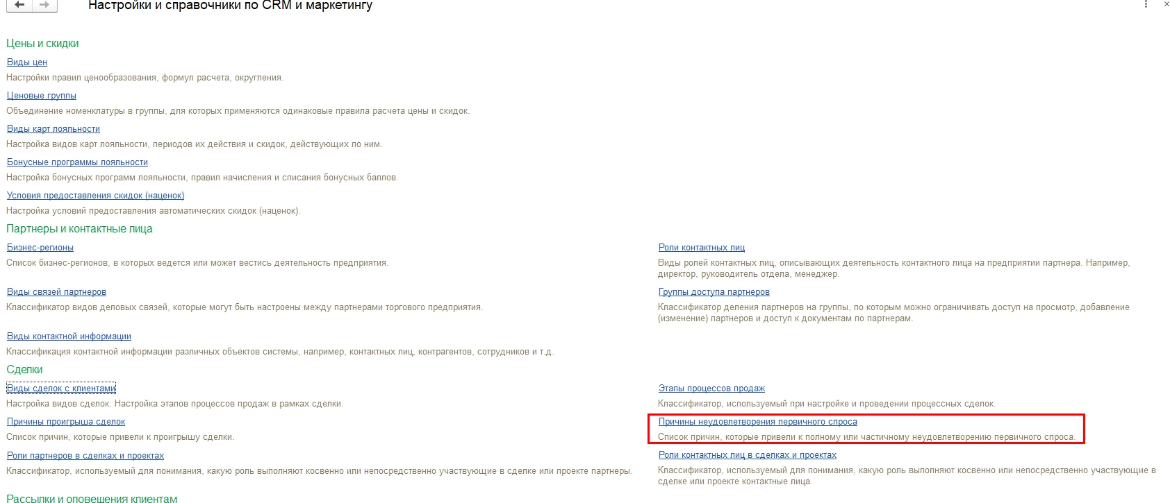 Выпадающий список пользователь может дополнить самостоятельно в разделе меню «CRM и маркетинг» - «Настройки и справочники».