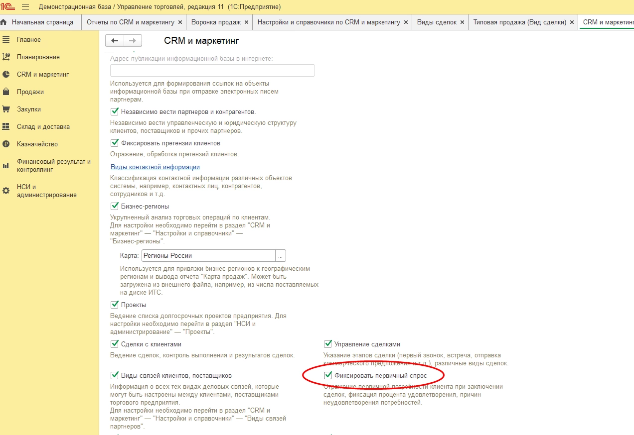 Галочка «Фиксировать первичный спрос» делает фиксацию первичного спроса обязательным условием сделки. Для включения такой возможности необходимо ее поставить в настройках программы.