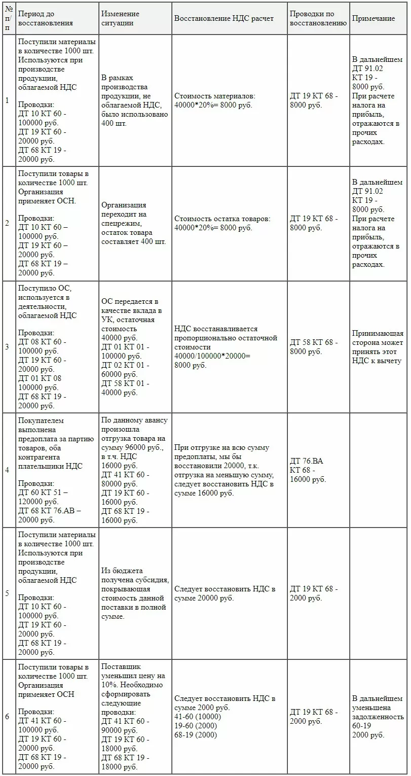 Рассмотрим наиболее распространенные случаи восстановления НДС.