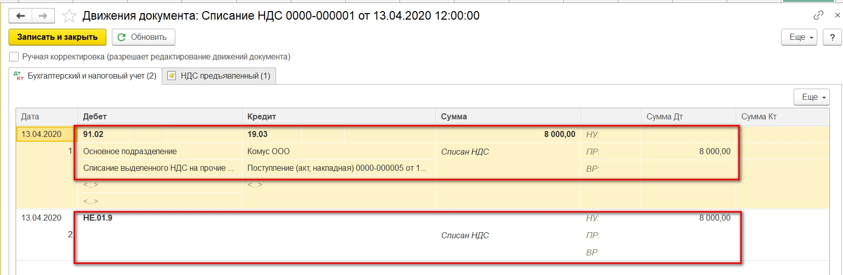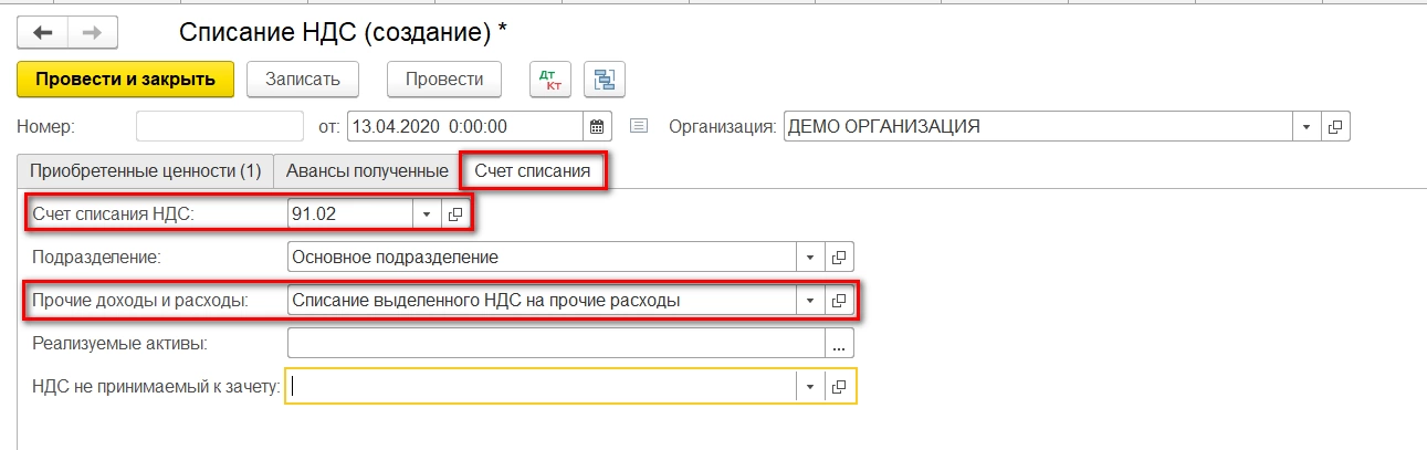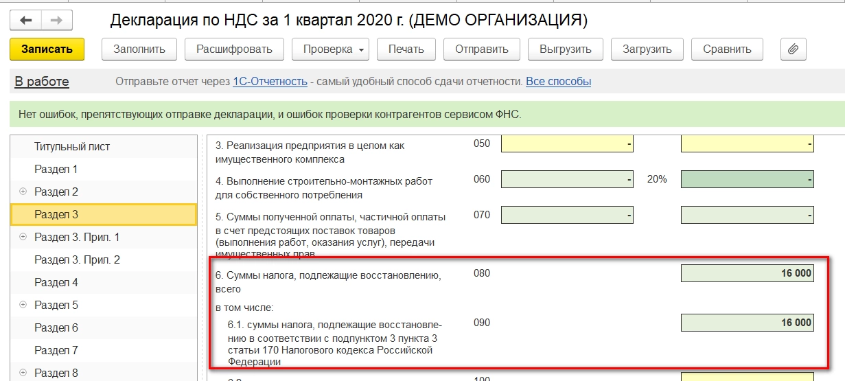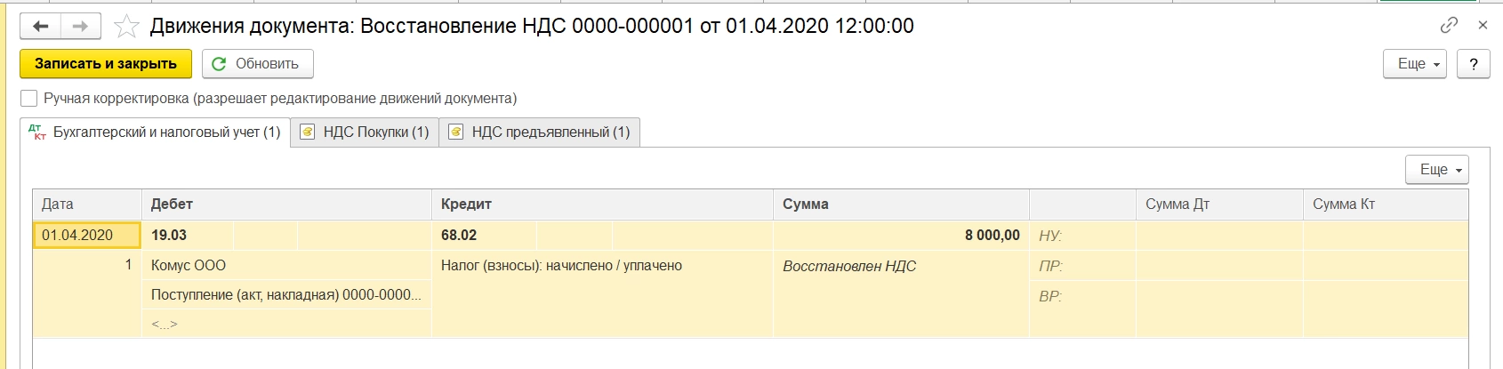 Восстановление НДС на примере конфигурации 1С:Бухгалтерия