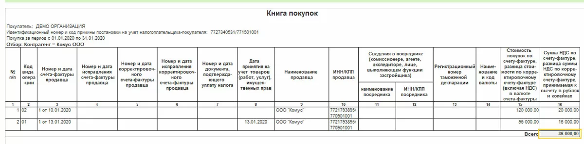 Если в этот момент сформировать Книгу покупок, у нас будет два вычета по одной поставке.