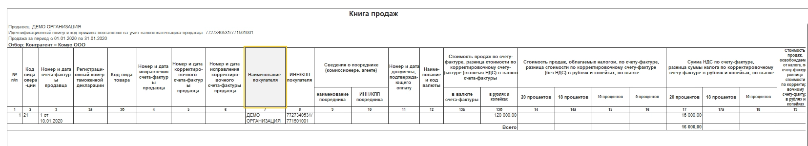 Нас интересует Книга продаж. Нажимаем кнопку Заполнить документ, табличная часть сформируется автоматически.