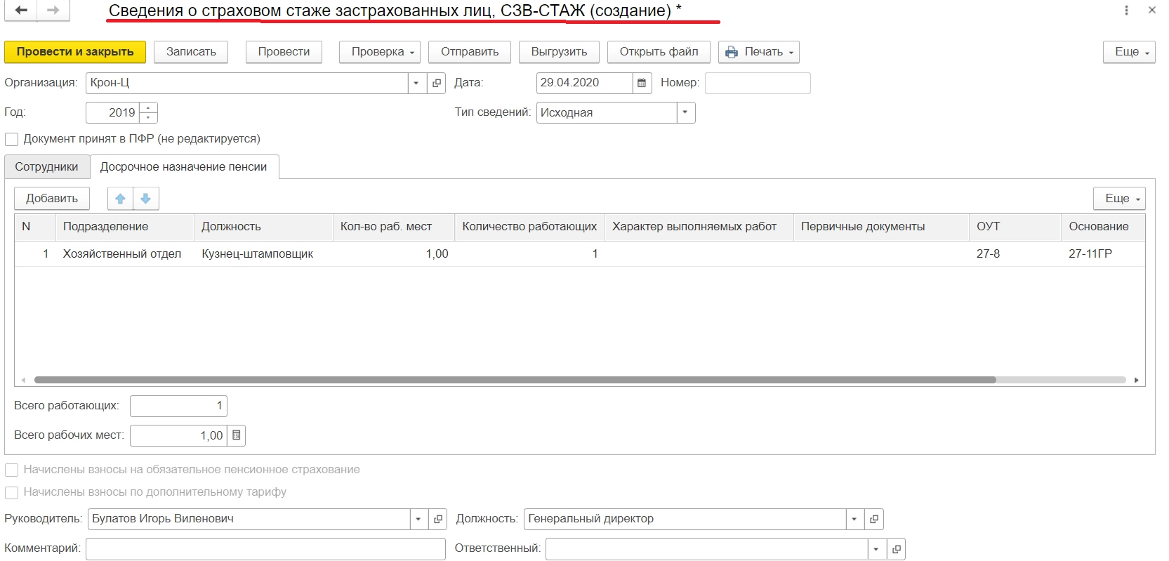 Переходим к отражению в отчетности в СЗВ-СТАЖ.