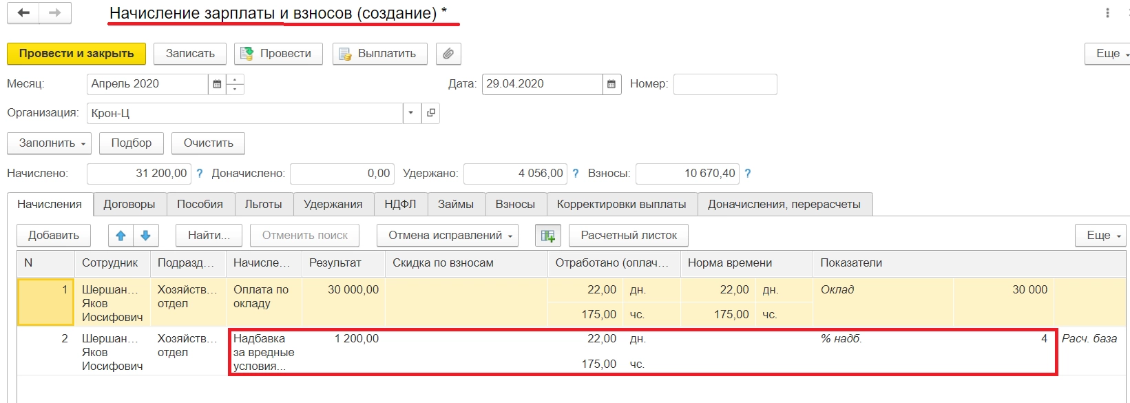 Эти данные предустановлены, создавать их в программе самим не нужно, поскольку корректные настройки 1С:Зарплата и управление персоналом решат большинство вопросов по начислению надбавок сотрудникам за работу во вредных условиях.