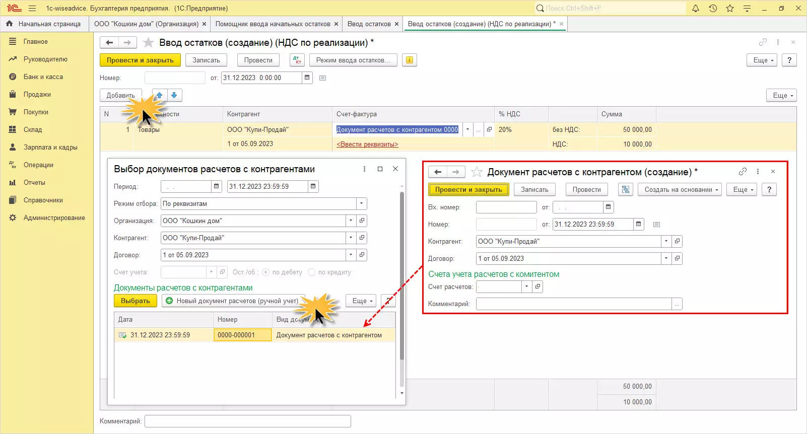 Если компания на ОСНО, то при вводе остатков дополнительно вводится «НДС по реализации».