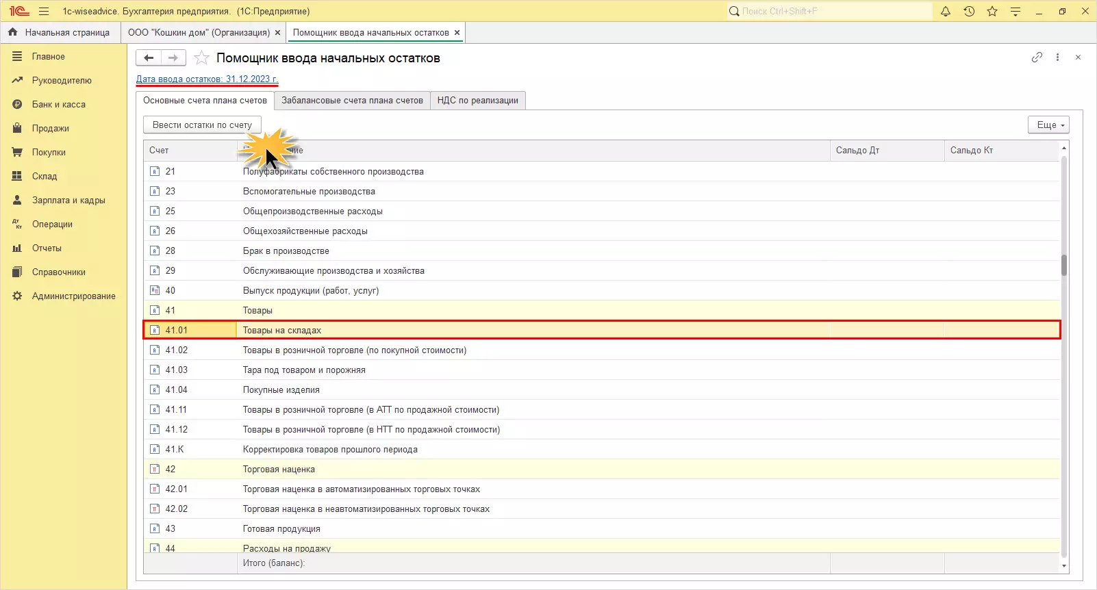 Подготовка к вводу остатков