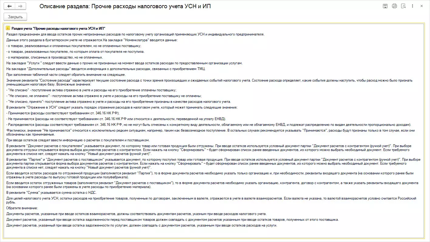 Если организация применяет систему налогообложения УСН или АУСН – доходы минус расходы, то, вводя начальный остаток по операциям, укажите «Прочие непризнанные расходы УСН» на появившейся вкладке.