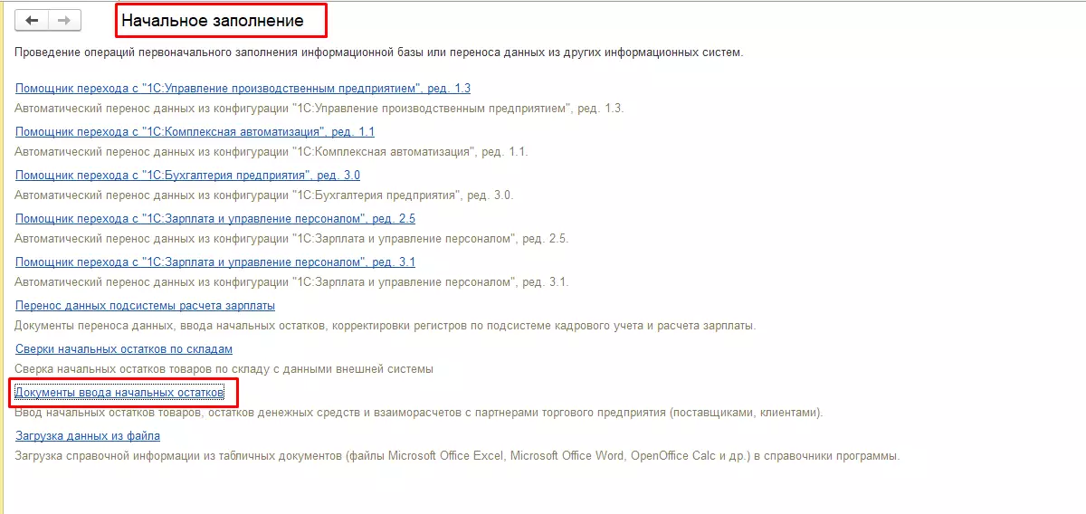 Далее движемся по гиперссылке «Документы ввода начальных остатков».